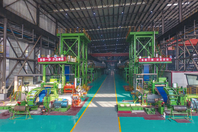 公司擁有1420酸洗冷軋聯(lián)合機組(PL-TCM)一套,機械由中國一重及中冶南方共同設計制造,電氣采用上海寶信軟件自動化控制系統(tǒng),機組設備配置合理,整體裝備達到國內一流水平。機械設備涵蓋激光焊接設備、噴射紊流式酸洗設備、高精度雙塔式切邊設備(SMS)、五機架竄輥式UCM連軋機、新型回轉式雙卷筒卷取機,軋機電氣采用秒流量控制系統(tǒng)。